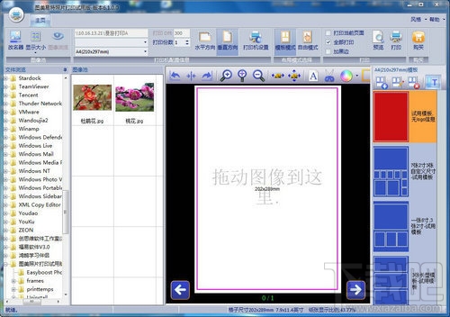 图美易特照片打印软件是一款专业的打印照片的软件。通过自由手动方式和模板方式在照片纸上布局各种尺寸的照片,帮助用户实现快速打印精确尺寸照片。模板方式除了提供了大量的打印模板,用户还可以根据纸张大小自定义模板。自由手动方式可以直接拖动图像到布局页面上调整位置,尺寸。一张照片纸上可以轻松地布局多种打印尺寸,比较大限度的利用纸张,并且一次可以布局多张页面。快速方便地实现批量打印。通过灵活的缩放,旋转,大小适应的调节的方式对照片控制。优秀打印尺寸智能地计算,照片打印缩放时的质量监控提示,保证了打印出高质量的照片。打印预览功能帮助用户在打印前预览布局的照片,及时修正不合理的图象文字大小以及图象文字位置。多种调色编辑功能帮助你轻松地对照片调色弥补照片的质量色彩缺陷。直观的界面设计使得用户可以轻松安全地对打印机的纸张类型,大小,打印机的DPI(dots per inch每英寸的点数)进行设置。无论你是一个专业的图像领域的专家还是业余的爱好者,使用易特照片打印软件可以帮助你快速精确确地打印出高质量的照片,提高效率,节约纸张,节约时间。