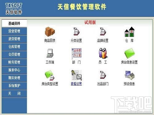 天信餐饮管理软件是为餐饮行业量身定做的管理软件。集前台收银、开台点菜、计价结帐、会员管理、进销存管理、后台管理、费用管理、营业统计、财务监察于一身。系统界面简洁优美,操作直观简单,全部以按钮方式操作,无需专门培训即可正常使用。为餐饮企业统一管理,提升服务水平、增加企业效益提供了一个良好的操作平台,是行业信息化管理的理想软件。
