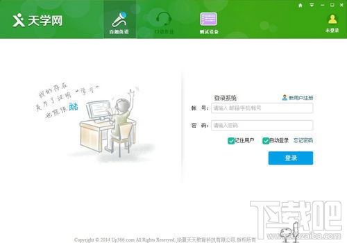 本应用为天学网旗下的PC客户端,目前拥有的功能是百朗英语。百朗英语是为促进高中学生听力水平而研发的一系列集练习测评一体的英语学习产品。