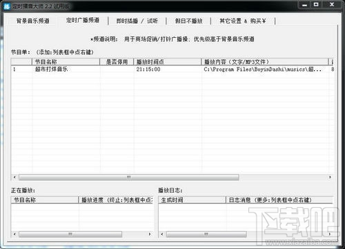 定时播音大师,专业的电脑定时播音软件,定时自动播放音乐或文字播音,通过将电脑音频输出连接至功放,即可打造一套简单易用的商场播音系统。