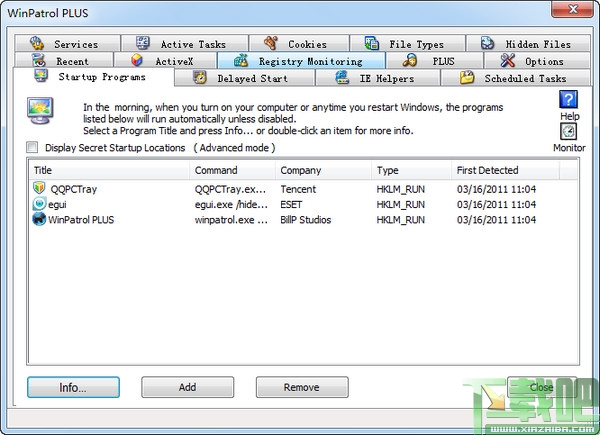 老牌的系统安全辅助软件WinPatrol是Windows的看门狗,WinPatrol2011能实时监控系统的以下项目: