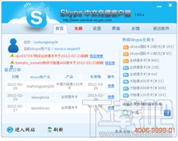skype中文充值客户端主要功能:显示用户最近充值记录、套餐用户续费提醒,会员用户自动登录,自动检测skype用户名,充值更方便,只需一步下订单。