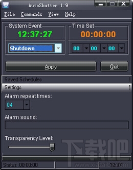一个自动关机的软件,当你指定某任务处理完成后,可使电脑关闭、 休眠、注销等等。如果经常从互联网上下载高清电影,系统光盘等大文件,或者你正在寻找windows下的自动关机软件。那么可以尝试一下AutoShutter,它简单实用,带有美观的用户界面。还可以当桌面闹钟使用。甚至还可以定时自动运行某个软件。