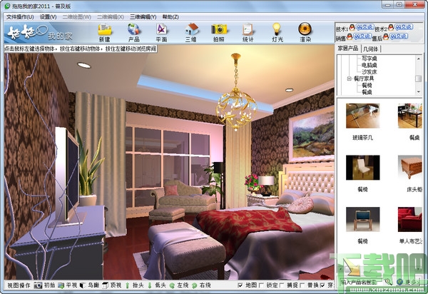 创想装修设计软件普及版(又称拖拖我的家),是国内第一个可视化装修DIY互动平台的家装DIY软件,是国内功能最强大、最专业、集三维装修设计、工程预算功能于一体的室内装修软件。拖拖我的家2011版,是三维装修设计软件又一个划时代的产品,在洞口建模、多层空间设计、二维三维一体化、灯带特效、浏览速度和渲染效果方面取得重大突破。