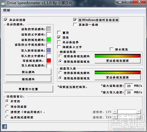 软件其它特点还包括允许自定义比较大读写速率的提示范围,以及虚拟指示灯的颜色、位置和透明度等等。