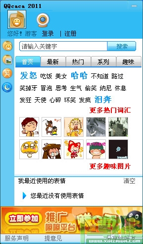 QQCACA嚓嚓表情平台广大用户提供了很多的表情,增添了我们在qq聊天的内容的多样性。软件亦带有大头贴,摇头娃娃,真人表情秀的功能。除了搜索表情,我们还可以制作表情,想象一下,把某人的表情和时下流行的经典语录放在一起制作成表情,是不是很有趣味性呢?
