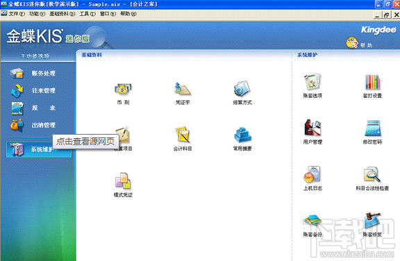 金蝶KIS 迷你版产品是一种账务处理系统,金蝶 KIS 迷你版账务处理系统面向各类企事业单位的财务人员设计,是财务管理信息 系统的核心。系统以凭证处理为主线,提供凭证处理,预提摊销处理,自动转账,调汇,结 转损益等会计核算功能,以及科目预算,往来核算,现金流量表等财务管理功能,并通过独 特的核算项目功能,实现企业各项业务的精细化核算。