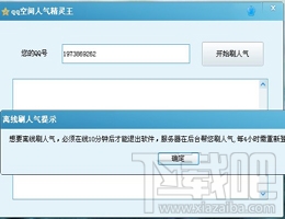 升级新增离线刷人气模式,网友可以提交Q号后5分钟后退出软件,服务器会自动帮网友刷空间人气,每小时可刷1-2万人气。 QQ空间人气王是一款提升QQ空间人气的辅助软件,她能自动模拟无数个真实用户访问你的QQ空间,从而达到刷QQ空间人气值的目的,同时还能提升QQ空间被随机访问到的机率,从根本上解决有人气没留言的问题,也起到刷阳光、雨露的作用。除此之外,她还有自动送花的功能,让你的QQ秀魅力值无限扩增!