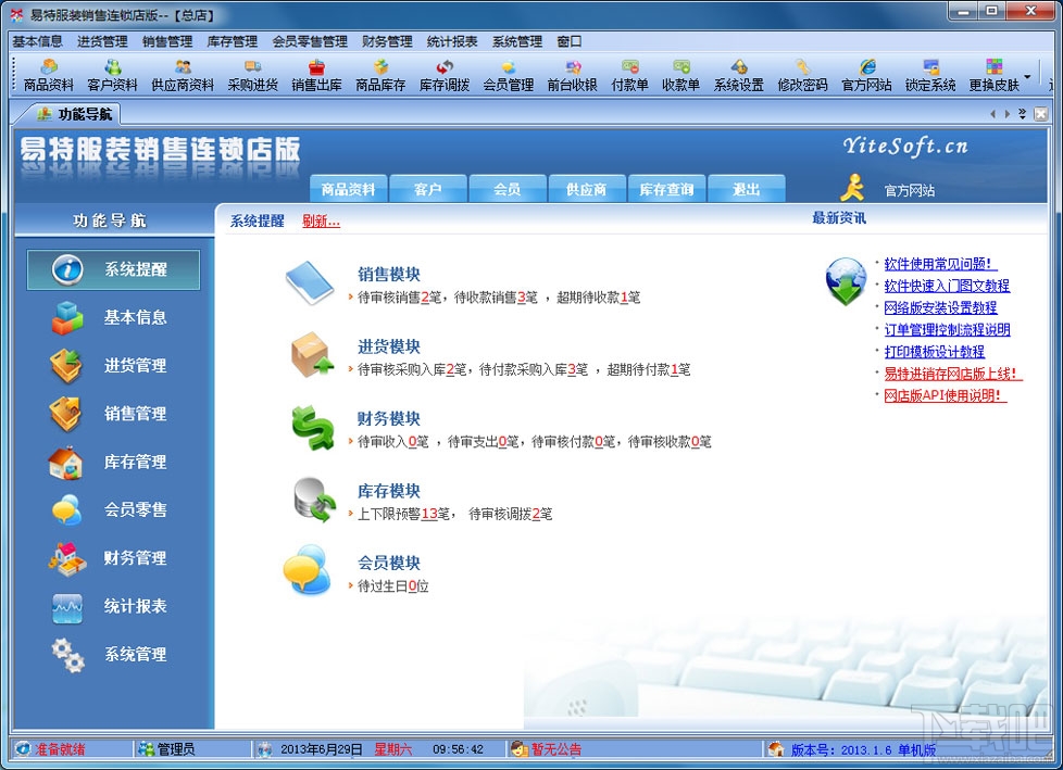 26.73 MB/2020-08-17易特服装店收银软件是一款优秀专业的专门针对服装店,内衣,鞋帽店而设计的销售管理软件,是一款具备有市场潜力的服装销售软件,结构明晰,操作简单,对店铺商品的进销存能很好地管理,让你的经营帐目清清楚楚。独创的颜色尺码处理技术,可以轻松应对各种颜色尺码。易特服装店收银软件功能简介:一、基本功能:自定义换肤、进货入库、销售收银、进货退回、盘点、付款、预付、收入、支出、成本、利润核算等。二、增强功能:会员管