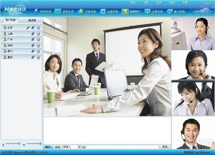 好会议视频会议是一个集视频交互、音频交互、电子白板、文档共享、屏幕共享、远程控制、远程协助、文字交流、媒体共享、资料分发、会议录制等多项功能的软件。