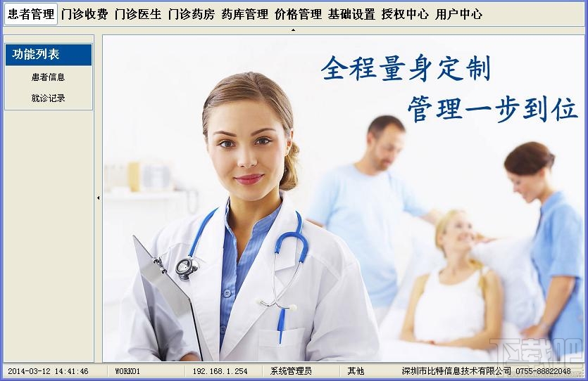 本软件为比特医院管理(BITHIS)系列软件中的门诊部管理系统,包括患者管理、门诊收费、门诊医生、门诊药房、药库管理、价格管理、基础设置、报表统计、授权中心、用户中心、服务器管理等模块。