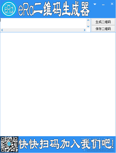 era二维码生成器是一款很小巧的二维码工具,平时我们在生活中经常使用到二维码。现在任何的一件商品上面几乎都会存在二维码,所以二维码生成器就是一个比较重要的东东了,大家需要二维码生成器的赶紧来下载吧。