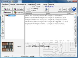 InsideCAT为包括 CD-ROM,软盘, DVD-ROM 和 ZIP 在内的你所有的碟片编目录,和有对压缩文件的支持。商店所有关于文件和文件夹的数据,以使之有可能与它携手合作而没有有被插入的碟片。它在集合和子集合方面组织你的目录。