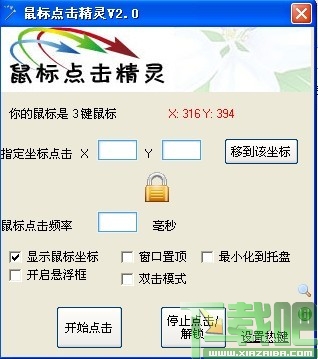 1.56 MB/2020-08-17鼠标点击精灵是一款鼠标点击的绿色辅助软件,用户可以轻松设置鼠标点击的频率,坐标,点击模式,并且可以自由设置热键,窗口模式,悬浮框等,在需要反复点击的软件,游戏的应用中