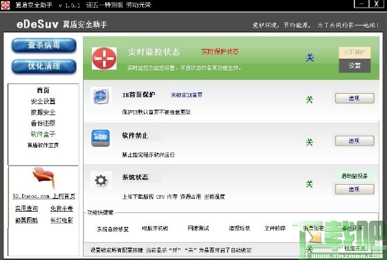 翼盾安全助手是一款绿色软件,您不需要支付任何费用。 功能简介:ie首页锁定,软件禁止,开机锁,查杀木马,查杀病毒,系统优化,清理垃圾,安全设置,数据安全,系统备份还原等. (软件正在进一步制作中,请使用程序主界面左边的“”意见建议留言“”,多多提议,谢谢)