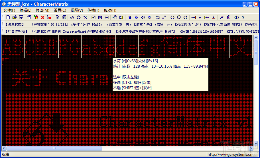 13、可对不限量字模同时进行可视化编辑[数量仅受运行本软件的计算机内存容量的限制];