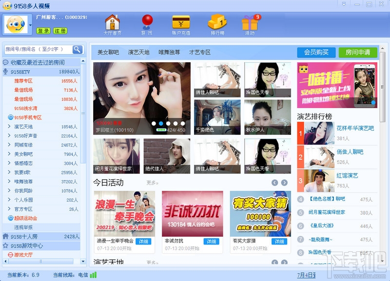 9158虚拟视频是一款虚拟的软件摄像头,下载吧提供9158虚拟视频官方下载,适用于可视频聊天的所有软件(QQ、MSN、UC、9158聊天室等),外挂上百种特效,集听歌、录歌、播放视频图片于一体,还可以对屏幕进行转播或录制,让您的视频更美丽,另外此款软件还与9158网站互动,只需在官方免费注册一下,就能轻松拥有在线拍照、视频相册、视频游戏等9158的所有功能。