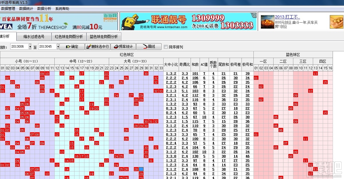 4.号码过滤功能。常规过滤指标有:AC值、和值、极号和、尾数和、奇数个数、大号个数、连号个数、质数个数、各个号码具体位置等。