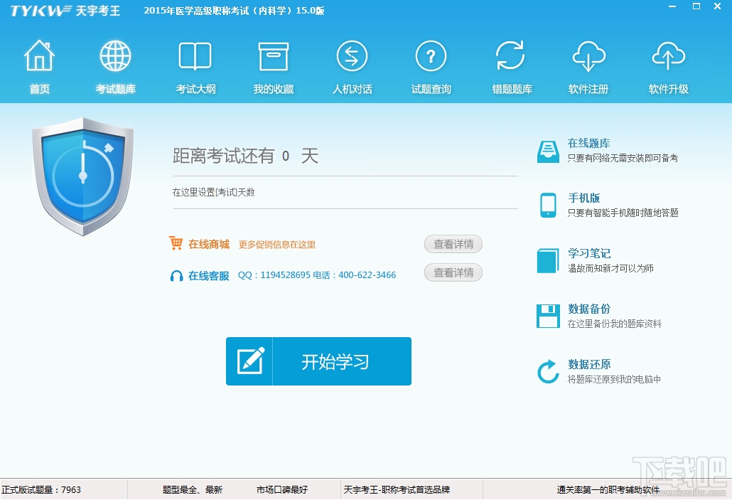 1,新题库 天宇考王是根据新考试大纲编订,由全国医药卫生专业资格考试专家研究组编写,能够对历年考试真题、新题型、必考题型进行全面覆盖,题目再难也不怕。 2,人机对话,高级试题,模拟考场 多种学习模式,充分调动您的学习积极性,设有答案提示让您没有后顾之忧,轻松掌握必考知识点。权威性的模拟考场,配合新试题发布,紧扣教学大纲,让您轻松通过考试。 3,历年真题,免费升级 可以了解到历年考试题型和难易程度,而不是盲目的复习,助你高分通过医药卫生考试,顺利拿证书;根据每年新考试大纲提供及时更新升级服务,终身免费升级。