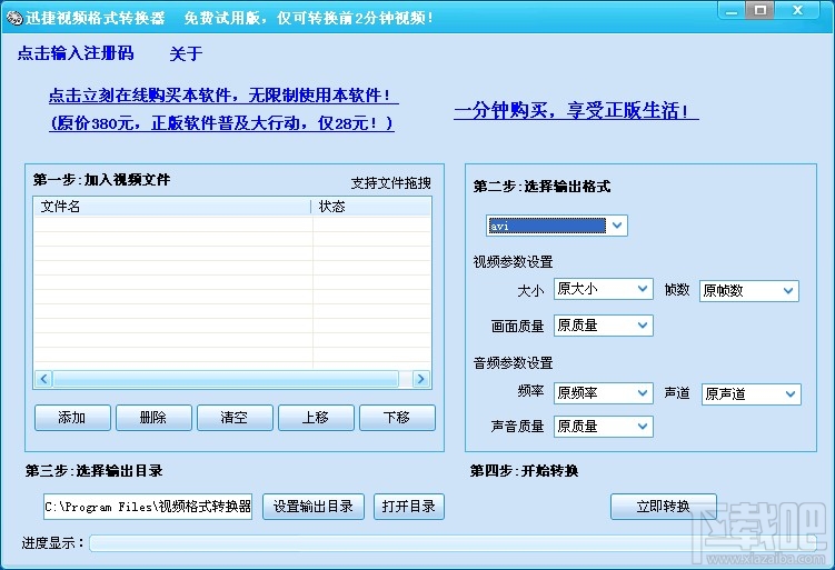 迅捷qsv视频格式转换器是一款爱奇艺qsv格式转换mp4工具,qsv视频格式转换器是非常便捷的视频格式转换器,qsv视频格式转换器文件仅10.4MB下载方便,占用内存小。 除却爱奇艺qsv格式转换mp4外,qsv视频格式转换器支持任何视频格式之间的转换,一个小时的视频转换仅需要几分钟。 通过qvs视频格式转换器转换后的视频可以在手机、电脑、数码相机、dvd、vcd等所有可以播放视频的工具上完美播放。 Qvs视频格式转换器的界面非常的简洁,全程傻瓜式操作,仅仅三步就可以完成视频格式转换,就算你从为接触这个软件,也可以非常熟练的使用!