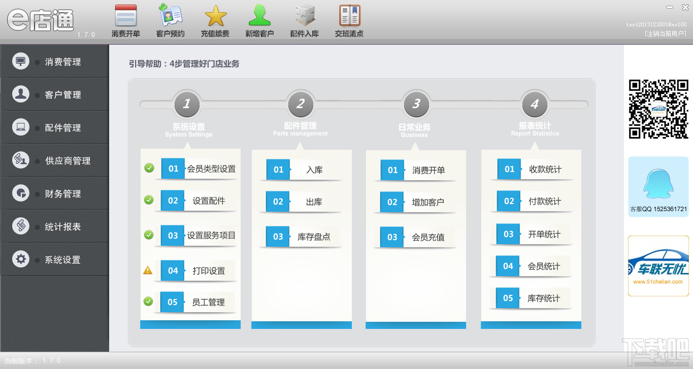 e店通门店管理软件是e店通品牌旗下的一款针对门店业务管理的系统,为汽车美容,汽车维修,轮胎专卖店等汽车服务终端门店提供包括消费开单,会员管理,库存管理,财务管理,报表管理,连锁管理六大功能。