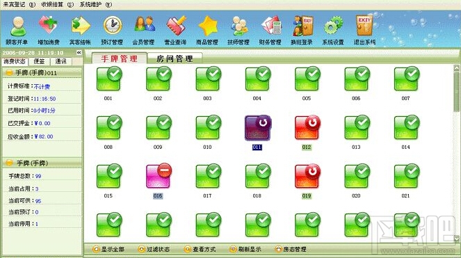 科学的管理方法让复杂的 足浴管理工作尽可能的简化。软件从实用的角度出发,尽力做到让用户更加简易的操作使用,--友好的操作界面,全面的操作导航,让用户轻松点击鼠标即可完成大量的日常工作!科学的管理,强大的组合查询功能(工具栏→筛选条)可按各种条件进行分级查询。该系统具体包括以下功能:手牌:手牌可分为男宾手牌和女宾手牌,每个手牌就具体到某一来店登记的宾客,一般把手牌提供给一个客人后,在当前客人未退出占用状态前暂时无法提供给另一个客人消费。此项目在系统设置中设置,在宾客开单时使用。包间项目:包间项目也可以理解为包间的种类(例如可分为豪华包间、普通包间等)。包间项目只能做为消费项目添加到某个已开单的包间中。商品项目:是店方提供给宾客的并收取一定费用的项目(例如:服务项目、酒水、香烟等)。此项目在系统设置中设置,在为宾客增加消费时使用。来宾登记→顾客开单:每个客户发生消费前必须进行登记(建立客户帐),给客户安排一个包间(手牌)等手牌项目类别,手牌项目类别必须是在“系统设置”模块中的“手牌项目类别”中已经设置,系统只能对已设置的手牌进行登记。来客登记→更换包间:假如因为店内原因或客人要求,造成客人当前占用的项目必须终止提供,但客人的消费并未终结,为此,可以通过更换手牌来将客人资料及消费信息在不进行结帐操作的情况下转到另一新项目下。例如:换包间。 项目状态:手牌项目的当前使用状态。例如:可供、占用、停用、预定等状态。 点单消费→增加消费:客人在消费过程中所消费的所有项目均要进行入帐处理,以便在客人离店时自动计算消费额。客人的消费明细便是在此入帐。收银结账→宾客结帐:终结客户当前的消费活动,并进行收款及自动还原手牌(包间)的占用状态为可供状态。商品打折和分类打折:在商品项目设置中有"打折设置",比如啤酒这个商品我们需要对宾客打折,首先找到此项目后点击"打折设置",在随后弹出的窗口中可以针对不同的宾客类型设置不同的比例,在结账时系统会根据不同的宾客计算出不同的打折比例。 这个属性比较适合做特价商品或对会员的特殊的优惠。 软件从实用的角度出发,尽力做到让用户更加简易的操作使用,--友好的操作界面,全面的操作导航,让用户轻松点击鼠标即可完成大量的日常工作!科学的管理,强大的组合查询功能(工具栏→筛选条)可按各种条件进行分级查询。