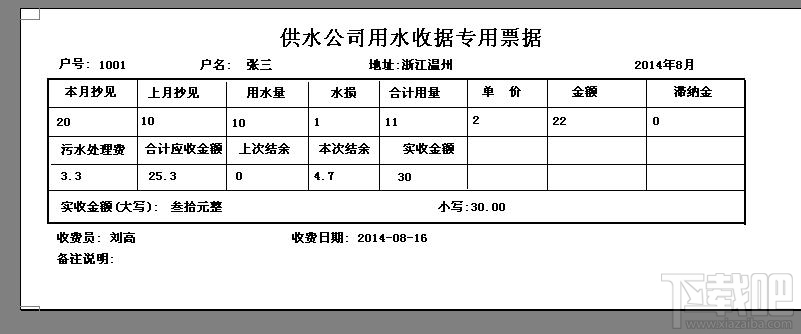 4.滞纳金计算功能。支持套打和连续打印功能,打印缴款通知单,和水费收款收据。