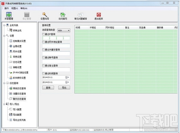 浏览网页黑白名单过滤:可以指定禁止浏览某些网页,记录某些网页 电脑IP-MAC绑定:可以将每台的电脑的IP与其MAC对应起来,防止随意更改IP,与MAC。 电脑攻击报警:对局域网内的ARP攻击进行报警 策略时间设定:可以按照时间段设置不同策略 自动发现电脑并开始管理:若局域网有新的电脑加进来,会自动加载策略,并开始管理 开机自动运行并开始管理:开机自动进行管理,无需登入电脑打开软件 跨网段(VLAN)管理:支持多网段管理 自定义管理规则:可以自定义IP,与端口进行封堵 日志记录查询:查询之前所记录的日志 强制电脑断网:对指定电脑进行强制断网 监视方式管理:不禁止被管理电脑上网,记录被管理电脑有哪些上网行为