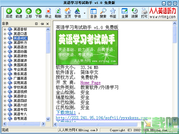 英语学习考试助手V1.0官方免费绿色版。 现在社会压力越来越大了,人活着也越来越不容易呢,每天都不要停的充电学习,想要免费的学习资料,在网上找总是要加一些限制,下载一个资料都要注册会员,有时候注册后,还要发贴回复,还有………太多太多,特意做了这个软件送给需要学习的朋友们。 想要 新概念英语、李阳疯狂英语、华尔街英语、剑桥商务英语、洋话连篇、走遍美国、BBC英语……这一些MP3吗,那就来下载吧,这软件的特色是里面有很多听力MP3+LRC字幕的文件,这样就更加的方便把教程放到手机中,随时随地的都可以学习了,要注意的是,要把MP3和LRC字幕放在同一文件夹呢,如果不是同一文件夹就显示不出字幕的啊!