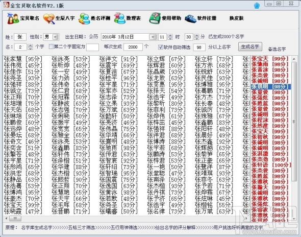 8.7 MB/2020-08-17高分五行生辰八字宝宝取名软件免费版是一款起名工具,软件有多种起名模式可以选择,有经典起名,高分五行起名,组名起名,小名起名等等。软件参照姓名学原理、八字、喜用神、名字吉凶、字辈、名字长度、文武、字型、音律、意义、美学、形象、起名心理学、起名禁忌、生肖、签名书写、天格、地格、人格、外格、总格、三才、成功运等诸多方面,从几百万个名字中,自动挑选出最匹配您孩子的几万个名字,评分达到99-100分,然后您