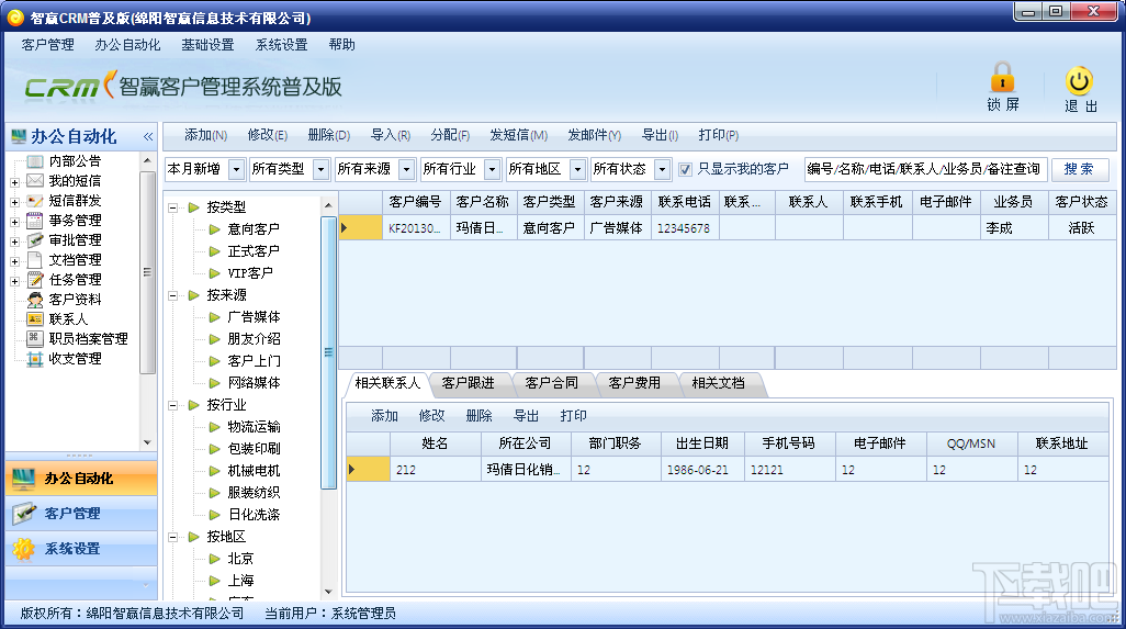《智赢CRM普及版》是一款小巧实用的客户关系管理系统。软件界面友好美观、功能强大而实用、操作简单易学,轻松完成日常经营管理中的客户管理、客户跟进、办公自动化、人事管理等经营活动。