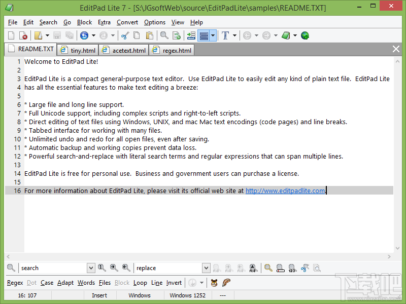EditPad Pro是Windows标准记事本的替代软件。它具有许多有趣的特点,包括在给定时间打开你想要打开的文件。在打开的文件之间进行转换只需点击它们的标签,进而消除了大量窗口重叠的繁乱感。EditPad 不需要任何额外的动态链接库(DLL)。