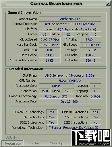 Central Braind Identifier 是一个免费的AMD处理器测试辨别工具包,程序采用直观的界面,为你提供所有的AMD处理器相关资讯,支持所有版本的AMD处理器