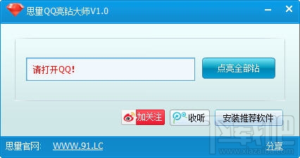 思量QQ亮钻大师是一神奇的软件,能够点亮QQ所有钻、点亮QQ所有图标的软件,让你的QQ瞬间成为高富帅!