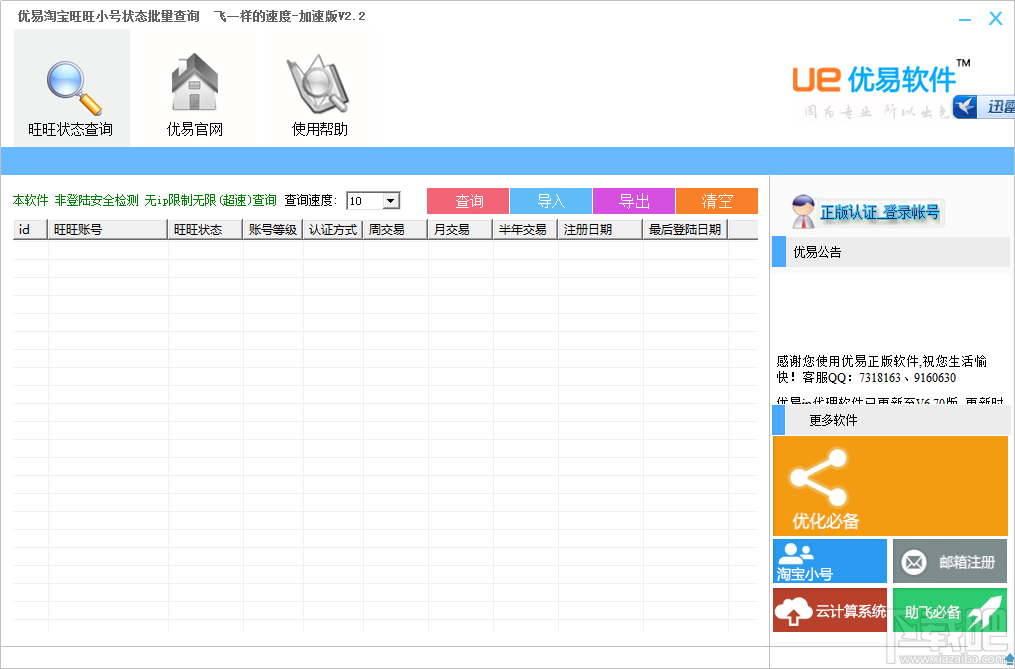 针对目前查询乱象,甚至有部分小号因查询软件的错误而批量死亡,优易特推出淘宝小号批量查询软件,我们收集经验并在原有技术上做了众多突破