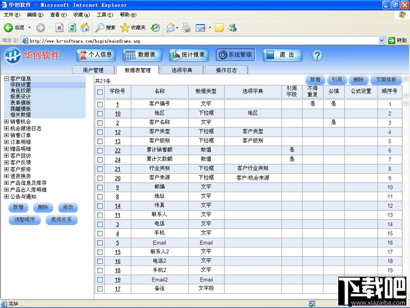 华创客户关系管理系统(CRM)是一款灵活性强、可自定义的管理软件,能管理从第一次接触到实现交易到售后服务的整个过程,具有来电弹屏、通话录音、自动提醒、手机短信功能。与同类产品相比,比较大不同是:以平台为基础,各方面都可自定义,可根据自己情况调整,不是固定死的。