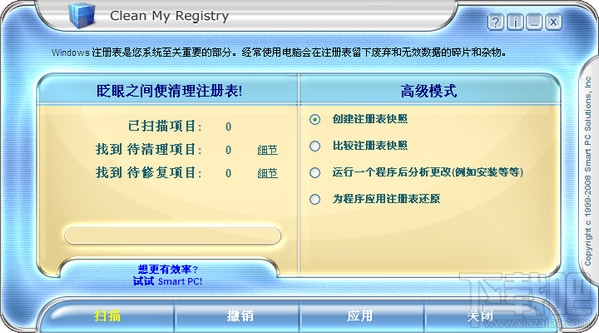 注册表清理工具,能监视软件的安装和卸载,使你可以控制windows注册表。 Clean My Registry正是一款安全性稳定性都很好的注册表维护工具,程序小巧精致,功能强大,不仅仅可以帮助用户轻松检测并修复多种注册表问题,还可以帮助用户辅助管理多种系统问题,是一款不可多得的系统维护实用工具。