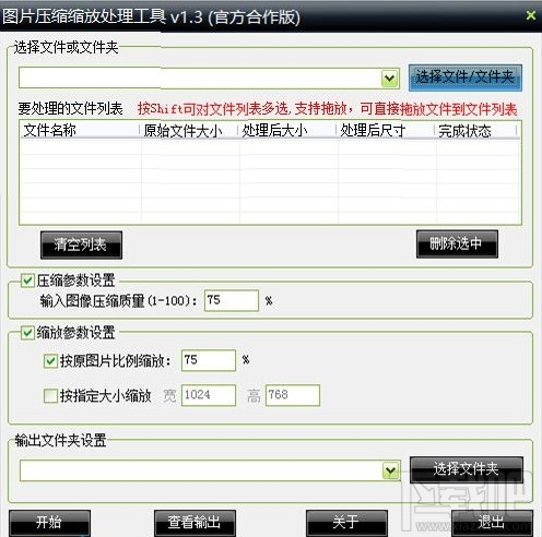 图片压缩缩放处理工具,批量压缩图片体积、批量缩小图片尺寸的软件,支持拖放操作,按住Shift键将图片全部拖到软件界面里,选择好要缩小的百分比和尺寸大小,点击“开始”即可开始转换。 绿色小巧的压缩图片、缩放图片尺寸的批处理工具。