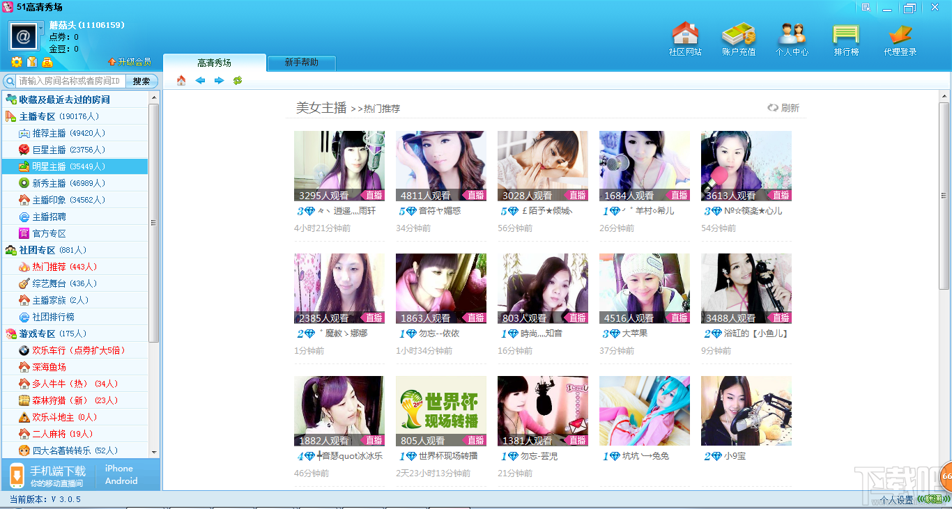 秀场视频直播间,支持数万人同时在线视频聊天、在线K歌跳舞、视频交友。
