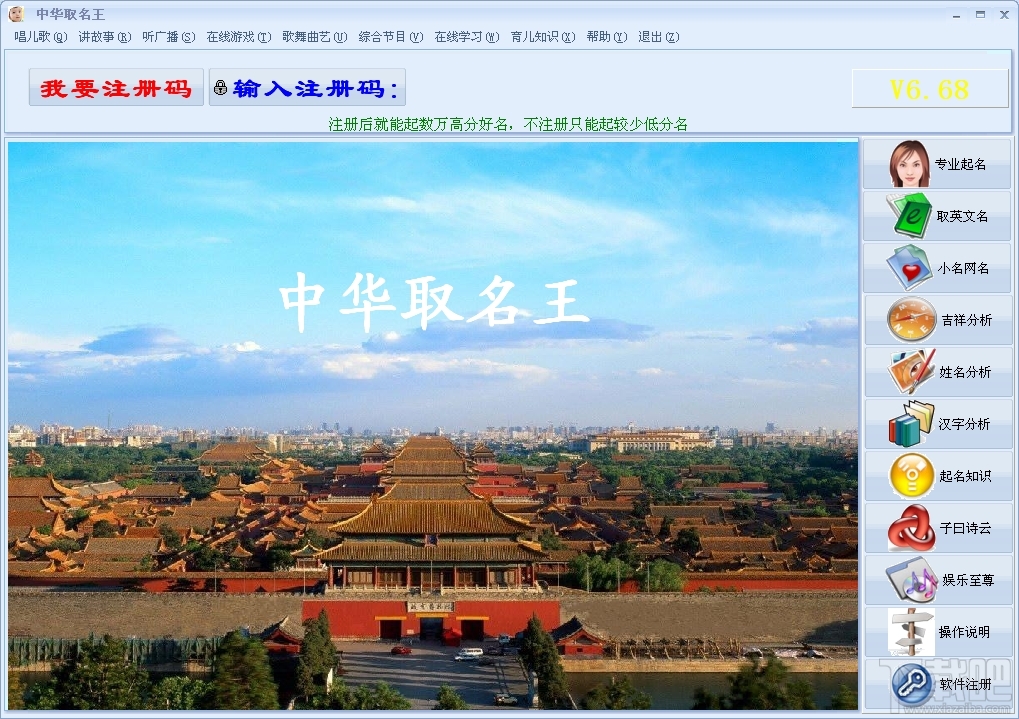 中华取名王完美版支持五行起名、生肖起名、偏旁部首起名、中华历代诗文名着起名,起名速度要快100倍。名利双收、驰名中外、鼎鼎大名 功成名就、威名远扬、金榜题名、久负盛名、立身扬名、名不虚传、名垂青史、名列前茅、名满天下、一举成名,名动天下等赫赫有名的成语,这一切说明名字的重要性已不容忽视。更有研究表明,名字将影响人的一生、好名带来好运。