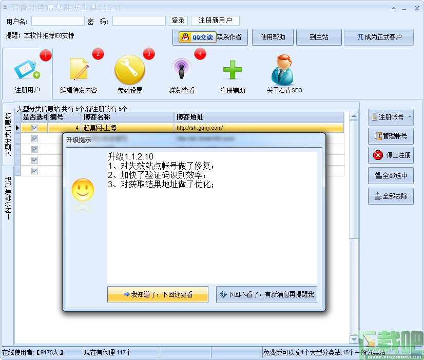 石青分类信息工具是一款全自动分类信息站群发软件,独创的验证码识别方式,快速发布信息,建立SEO外部链接。本软件是一款高效的分类信息群发工具,可以对国内大型分类,赶集,58等等站做群发,以及大批量的普通分类信息站做全 自动验证码识别发送。客户只要录入好注册帐号,密码,以及群发内容,就可以轻点鼠标实现信息的网络覆盖。