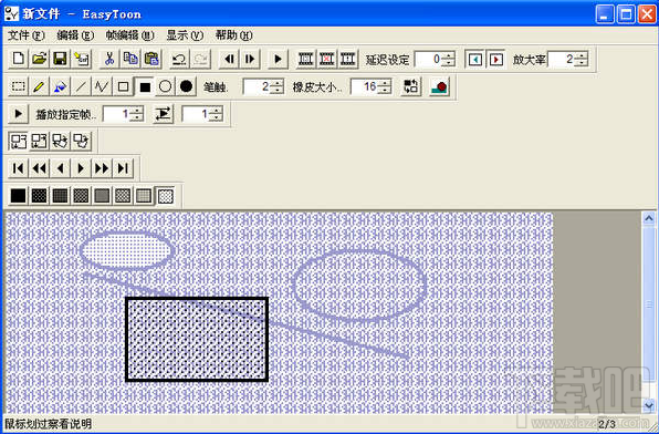 EasyToon是简便GIF动画手绘软件,可一帧一帧绘制GIF动画,特为鼠标绘制优化算法,每一笔划都是线段而非点的组合,EasyToon不能制作彩色的GIF动画,但提供了网点填充功能。