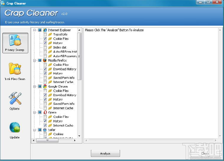 Crap Cleaner是一个100%免费的系统优化,隐私保护和清洁工具。有了它您会看到,性能立刻得到提高。它同时还可以擦掉你的活动历史和您的计算机上网痕迹,清理临时文件及需要的硬盘空间。