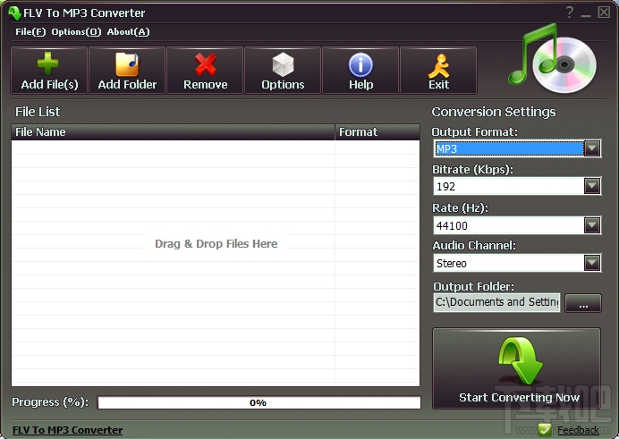 FLV To MP3 Converter是一款转换快速转换FLV 文件为MP3音频格式的工具, 软件也支持将MP4, MPG, FLV, WMV, MOV等视频格式转换成MP3, WMA, WAV, OGG 和FLAC 音频格式, 你可以设置输出MP3的比特率,采样率,声道,或设置和flv音频流格式一样的样本设置值,界面简单友好,便于使用.