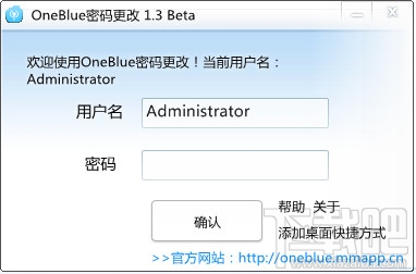 OneBlue密码更改工具可以跳过输入原密码直接重置密码,OneBlue密码更改支持自动识别当前用户,修改密码无需原密码,是一款十分值得收藏的系统小工具。