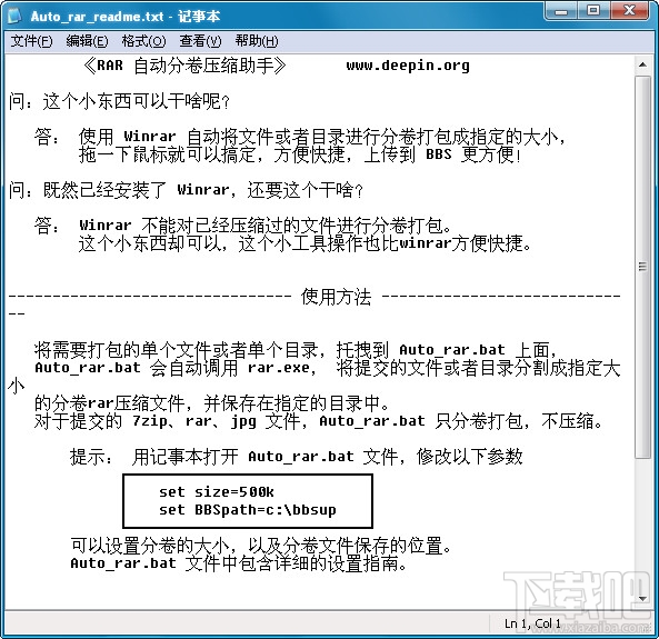 RAR自动分卷压缩助手使用方法: 将需要打包的单个文件或者单个目录,托拽到 Auto_rar.bat上面, Auto_rar.bat会自动调用rar.exe,将提交的文件或者目录分割成指定大小的分卷rar压缩文件,并保存在指定的目录中。对于提交的7zip、rar、jpg文件,Auto_rar.bat只分卷打包,不压缩。