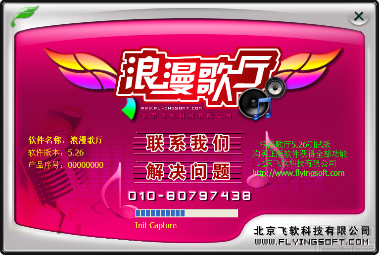 《浪漫歌厅 》是由北京飞软科技有限公司开发的新一代MTV演播厅软件,是多媒体软件行业的一个新亮点。软件操作简单,界面漂亮个性。演唱者站在蓝色背景幕前 ,她的图像经过摄像头进入电脑,系统实时进行抠像,去掉蓝色背景,更换新的背景,加蒙版,字幕叠加,可以调整人物大小、位置、旋转度,动态前景装饰等。