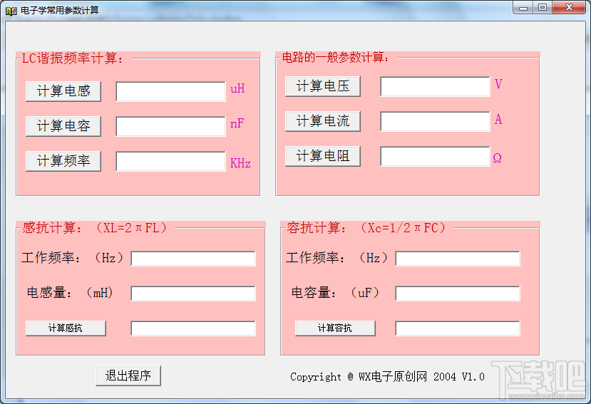 电子学常用参数计算是一款可以帮助用户计算电子学常用参数的小工具,该工具的计算范围包括了LC谐振频率计算、电路的一般参数计算、感抗计算、容抗计算等,是用户计算电子学参数的得力助手。