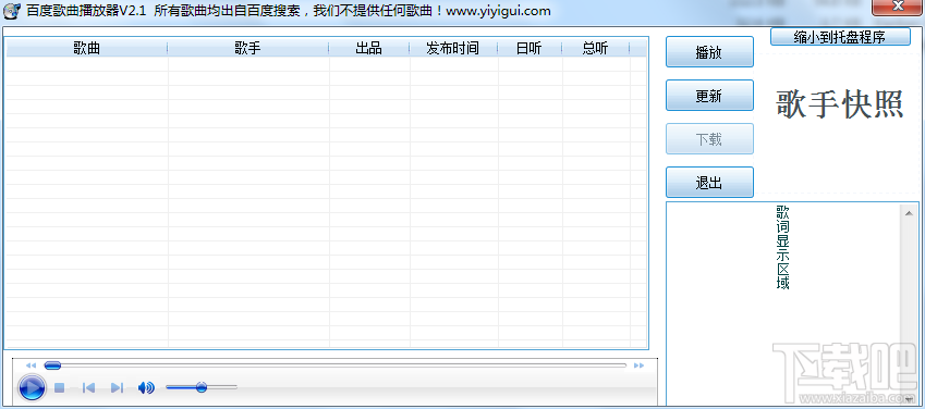 百度歌曲播放器是一款绿色小巧的在线音乐播放软件,主要是获取百度新的歌曲,所以所对很多朋友都有帮助