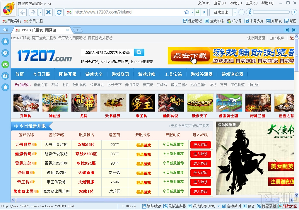 新服游戏浏览器是一款专门针对页游玩家研发的网页游戏浏览器,新服游戏浏览器真正站在玩家PK角度考虑而设计的游戏浏览器,本浏览器永久免费,请放心使用!